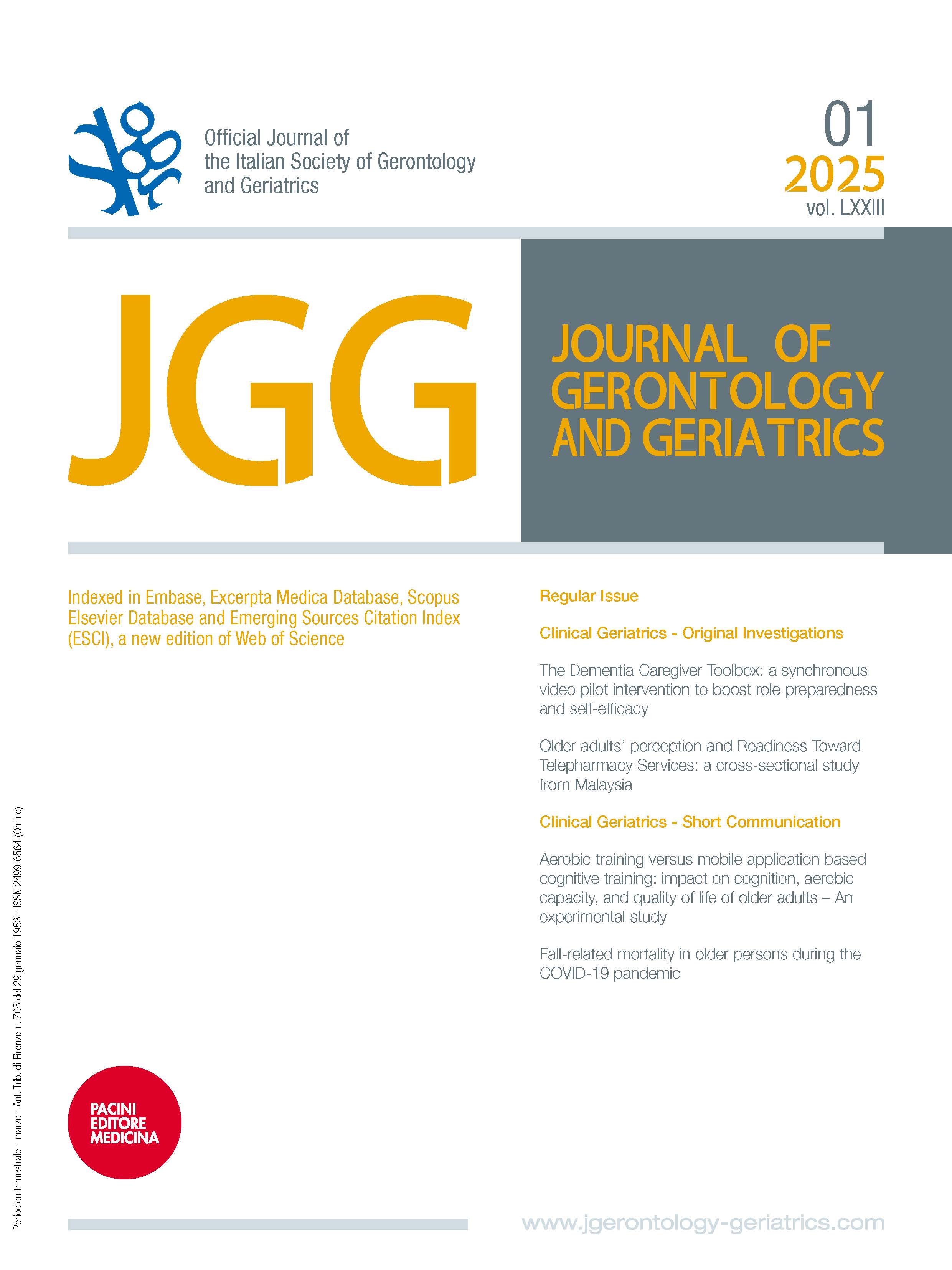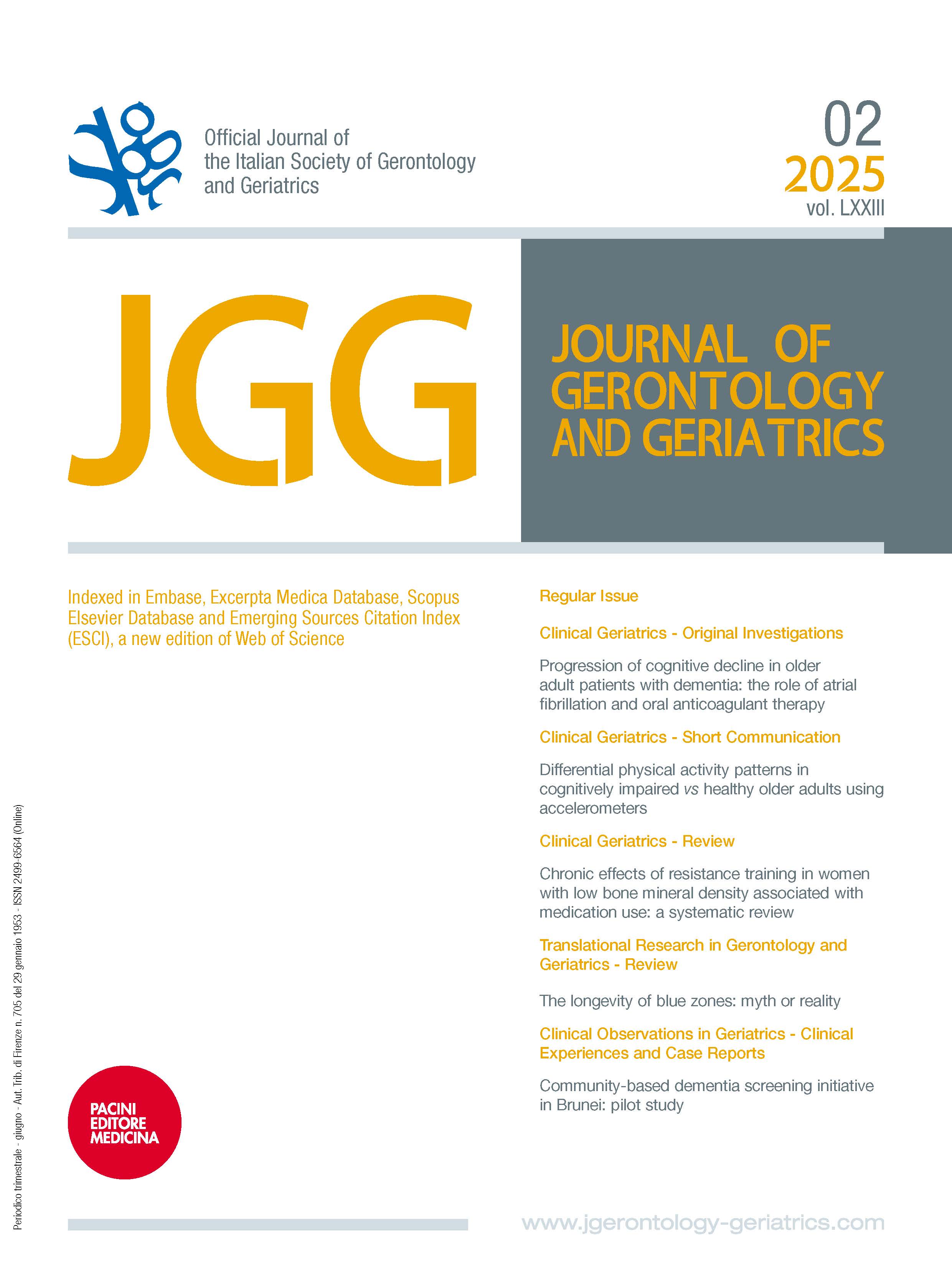 The Journal of Gerontology and Geriatrics (JGG) is the official journal of the Italian Society of Gerontology and Geriatrics (SIGG), which will be an international, interdisciplinary, peer-reviewed journal concerning frontiers and advances in the field of aging.