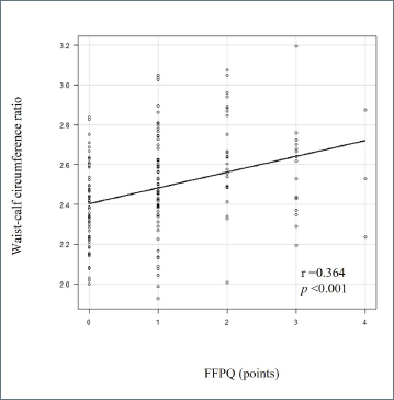 Figure 1.Correlation between Fried frailty phenotype questionnaire (FFPQ) and waist-calf circumference (n = 175).