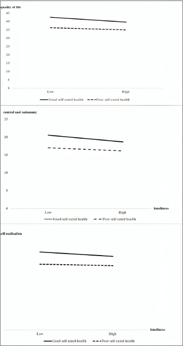 Conclusions. Subjective health perception shapes how loneliness affects QoL. Middle-aged and older adults with better SRH may be more vulnerable, underscoring the need for person-centered interventions.